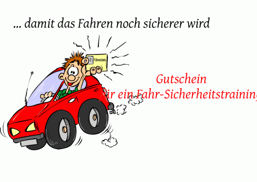Das Motiv des Geschenkgutscheins ist jemand, der aus dem Fahrerfenster seines Auto schaut und sich mächtig über die gerade bestandene Führerscheinprüfung freut. Stolz reckt er uns zum Zeichen seines Erfolges den frisch erworbenen "Lappen" entgegen. Sogar das Auto hüpft da vor Freude.