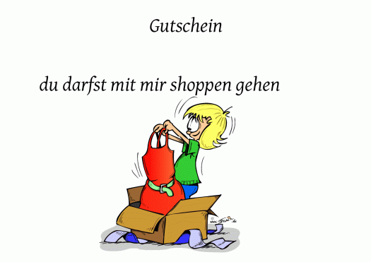 Auf unserer Gutscheinvorlage sieht man eine junge Frau, die ein Kleid aus einem Karton auspackt bzw. heraushebt und sich über den Anblick des Modestückes riesig freut, es scheint ihr demnach zu gefallen. Sie können dieses Motiv frei mit Texten Ihrer Wahl ergänzen. Wie wäre es zum Beispiel mit dem Text "Gutschein für Mode - alles très chique, nur für Monique." Passt selbstredend nur dann, wenn die Beschenkte Monique heisst. Aber Sie können dabei ja ganz Ihrer Kreativität folgen - die Vorlage dafür samt Designwergzeug liefern wir Ihnen mit unserem Editor auf dieser Seite.