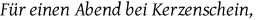 Insgesamt 66 Geschenkideen für Candlelight, bzw. Kommentare oder Beiträge von unseren Nutzern zu diesem Thema. Auf weiter oder zurück klicken zum Anzeigen der weiteren Ideen.