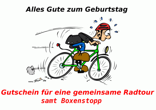 Bei uns können Sie einen Gutschein für ein Fahrrad oder Alles, was damit zusammenhängt, selber machen. Zum Beispiel eine Fahrradtour. Oder für eine Fahrradlampe. Drucken Sie Ihren Gutschein jetzt aus.
