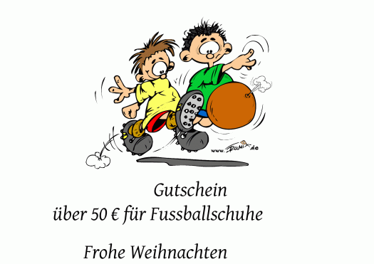 Wenn Sie einen Fussball verschenken wollen oder eine Fussballkarte (vielleicht sogar eine Dauerkarte!?), machen Sie doch dafür einen Gutschein selber. Das können Sie mit unserem Programm kinderleicht! Einfach die Grafik auf der Gutscheinvorlage positionieren, Texte dazu und fertig ist bereits der tolle Gutschein.