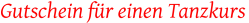 Mit unserer Gutscheinvorlage können Sie bequem und originell einen Tanzkurs verschenken. Auf der Vorlage sieht man ein Paar, welches das Tanzbein schwingt. Einfach die Vorlage ausfüllen und dann in hoher Qualität den Gutschein ausdrucken. Einfacher geht es nicht. Alles einfach selber machen.