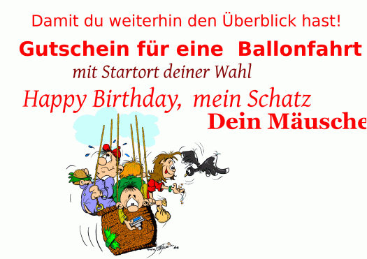 Eine Fahrt mit dem Ballon (häufig auch: Balon) stellt ein außergewöhnliches Geschenk dar. Auf unserer Webseite kann man einen Gutschein mit einer unserer hochwertigen Gutscheinvorlage selbst erstellen, um eine Ballonfahrt auf ehrwürdige Weise als Geschenk zu überreichen. Der Gutschein-Editor auf dieser Webseite ermöglicht es Ihnen, eigene Texte in verschiedenen Schriftarten, -Farben und -Größen und das hier angebotene Motiv einer ballonfahrenden Familie, an der ein Vögelchen vorbeifliegt, selbst frei zu kombinieren und positionieren. Auf diese Weise unterstreichen Sie ein einmaliges, originelles und wertvolles Geschenk, an das sich der oder die Beschenkte mit Betrachten der Gutscheinkarte noch Jahre später erinnern kann.